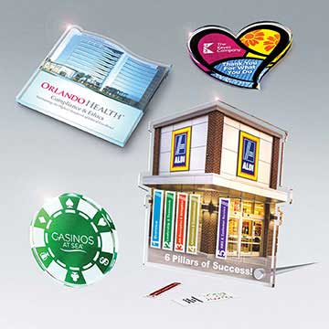 Customize the shape of your acrylic award to create an impactful moment of recognition. Laser cut to shape and thne digitally printed to showcase your design beautifully. Can add a base for a stand.